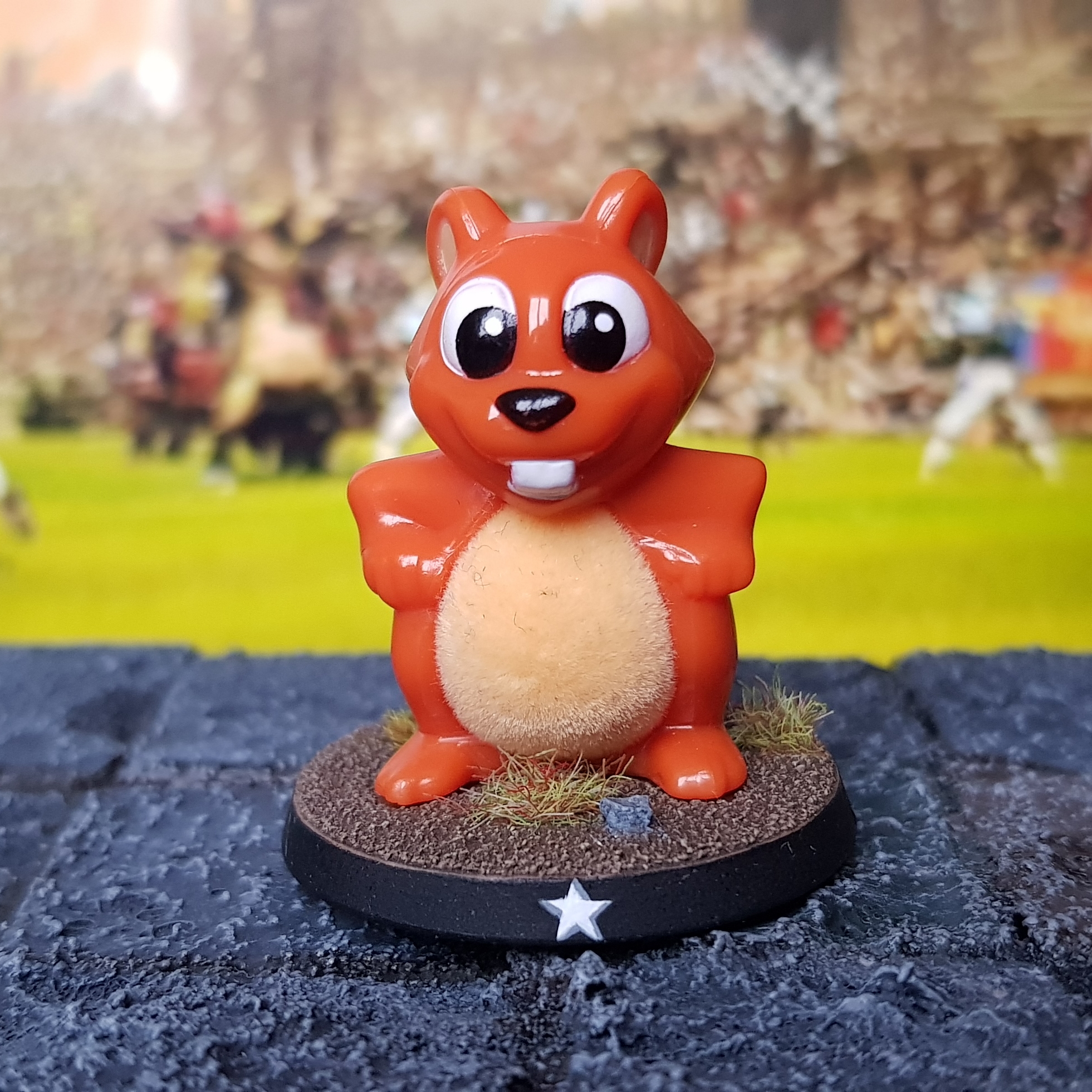 Early in my Blood Bowl career, I didn’t own an Akhorne model, so I had to use a proxy. I used this somewhat cute toy figurine. These days,